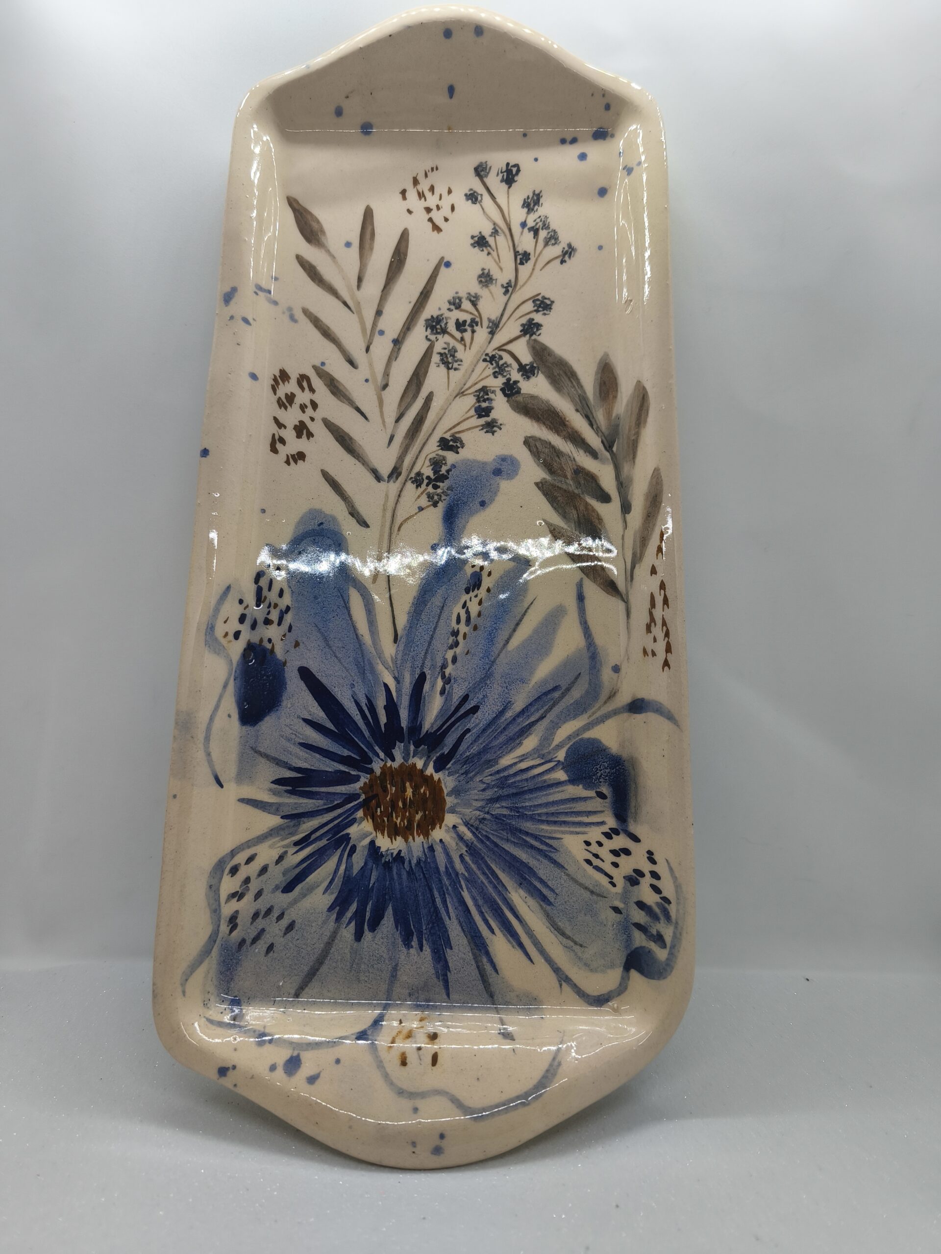 Delicada pieza de ceramica artesanal pintada con motivos variados y esmaltada.