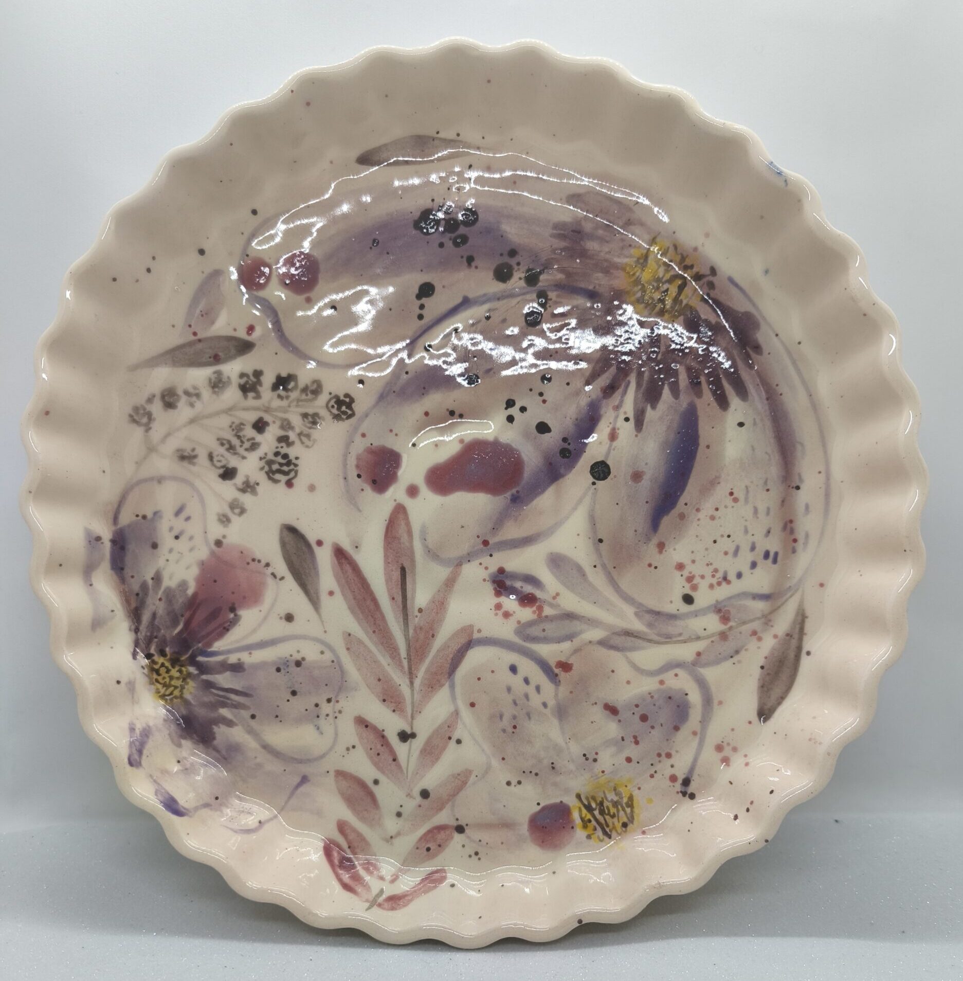 Delicada pieza de ceramica, pintada con motivos variados y esmaltada.